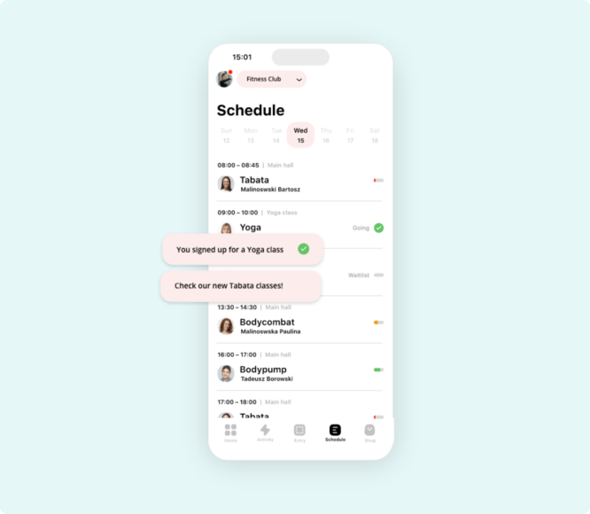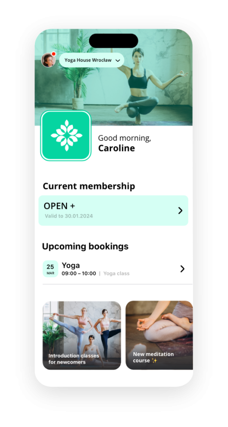 System do zapisów, płatności, szybkich wejść do klubu, sprawdzenia postępów i aktualności klubowych.