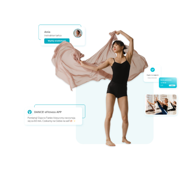 Aplikacja eFitness App to prawdziwy game changer w Twoim studiu! Klienci sami zapiszą się na zajęcia, odwołają rezerwację i opłacą treningi lub karnety. Zaoszczędzisz mnóstwo czas, a rutynowe czynności wykonają się... same!