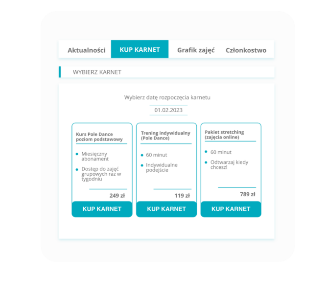 Zaoszczędź czas dzięki Strefie Klienta! Grafik zajęć będzie widoczny online, a klienci samodzielnie zapiszą się na zajęcia a także kupią karnet.